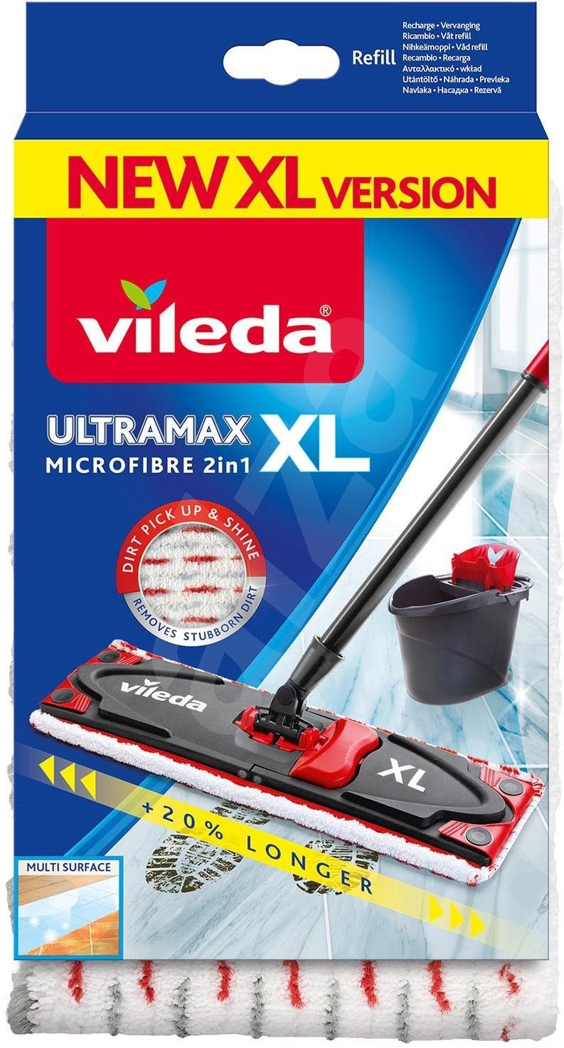 Náhrada k mopu Vileda Ultramax XL Microfibre, ale také k mopům Vileda Ultramax XL, Ultramat TURBO XL a Premium 5.Tento mycí návlek je o 20 % větší, než standardní náhrada na mop Ultramax Microfibre 2v1. Obsahuje 2 druhy vláken, díky kterým lépe odstraní nečistoty. Mikroaktivní vlákna mopupohltí...