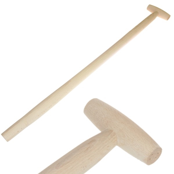 dřevěná prohnutá násada na rýč délky 110 cm od slovenského výrobce s koncovkou ve tvaru T pro lepší držení při práci EAN 8586014250850 przeczytaj całość
