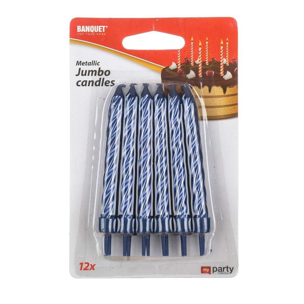 svíčky narozeninové metalické JUMBO v držáku, sada obsahuje 12 ks, barevný mix v kartonu 6ks tmavě modrá + 6ks tmavě oranžová výrobek využijete na oslavě, zahradní párty, pikniku apod. délka svíčky 8 cm, průměr 0,8 cm EAN 8591022429709 przeczytaj całość