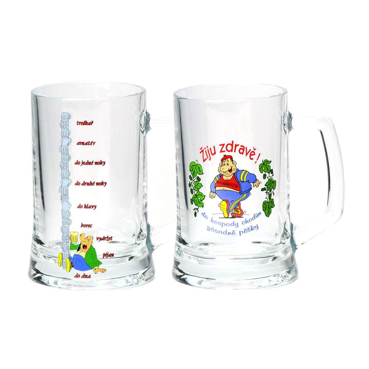 Wysokiej jakości szklanka do piwa o pojemności 500 ml z nadrukiem dowcipu pubowego. Szklanka ma grube dno. Dekor według dostępności magazynowej. EAN 8590504015416 przeczytaj całość