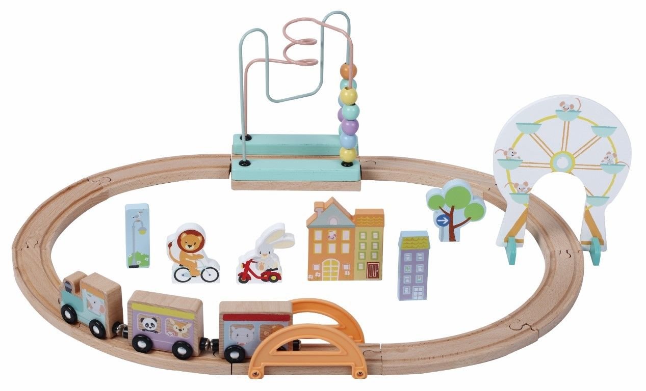 • Dřevěné kolejiště s hračkami • Nákladní vlak s vagóny, domečky, kolotoč a drátěný labyrint – tolik zábavy v jednom balení!• Hračka je natřena zdraví nezávadnými barvami• Hračka splňuje normu EN71• Doporučený věk 18m+ przeczytaj całość