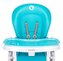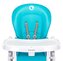 Komfort i bezpieczeństwo przy stole. Szerokie możliwości regulacji dopasują krzesełko do dowolnego stołu. Regulacja oparcia aż do pozycji leżącej pozwala ustawić krzesełko w pozycję leżaczka, która jest idealna dla najmłodszych już od urodzenia. Siedzisko Pokrycie ze skóry ekologicznej łatwo się czyści i zapewnia potrzebny komfort. Regulacja wysokości 6-stopniowa regulacja wysokości krzesełka ułatwia użytkowanie przy dowolnym stole. Oparcie Oferuje 3-stopniowe nachylenie z funkcją leżaczka dla dziecka. Taca Dwuwarstwowa taca pozwala utrzymać powierzchnię dla dziecka zawsze czystą. Podwyższana taca pozwala zaoszczędzić cenne miejsce. Mobilność Wbudowane kółka umożliwiają łatwe przemieszczanie krzesełka z pokoju do pokoju. Proste składanie Gdy krzesełka nie używasz, po prostu je złożysz i schowasz. Na tylnej stronie znajdują się też kółka ułatwiające przesuwanie krzesełka. Duży kosz Idealny na zabawki i wszystko, czego potrzebuje dziecko. Maksymalne obciążenie: 15 kg Zalecany wiek: 6-36 miesięcy Wymiary: 110x86x55 cm