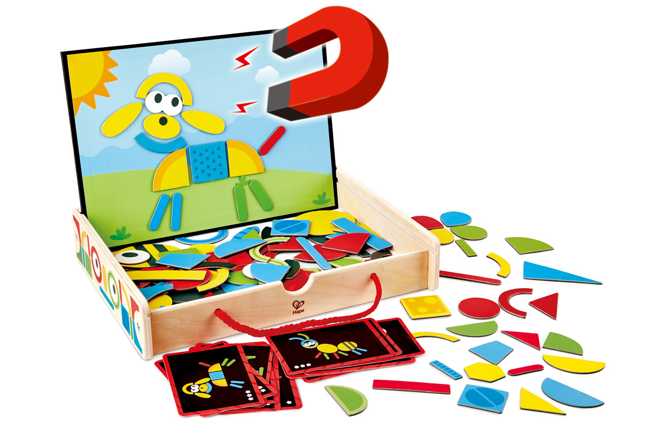 Nechte se unést svou kreativitou s tímto fantastickým magnetickým kufříkem. Vyberte si z 91 přiložených magnetických dílků různých tvarů a barev, umístěte je scénu zobrazenou na vnitřním víku nebo na prázdné zadní straně tvořte dle své fantazie. Součástí sady jsou i kartičky s obrázky pro...
