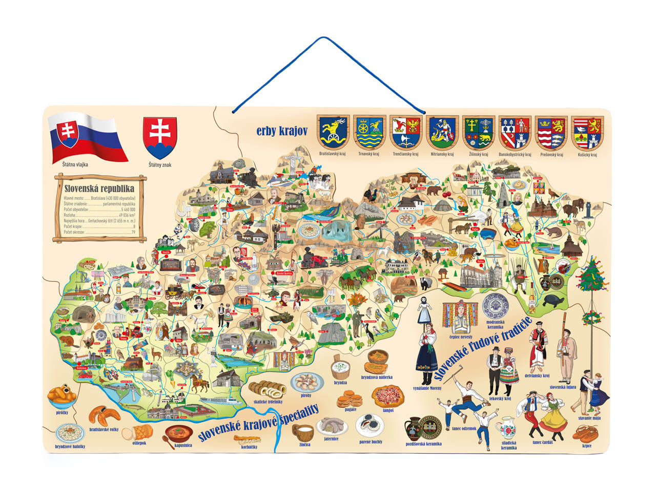 Magnetická mapa Slovenska s obrázky a společenská hra 3v1