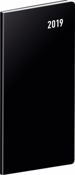 Vreckový diár Čierny SK 2019, plánovací mesačný, 8 x 18 cm
