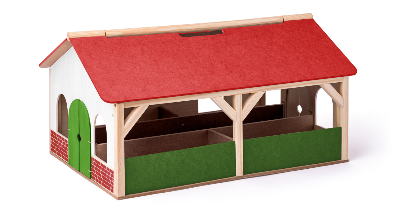 Prostorná hospodářská budova pro domácí zvířata s vnitřním členěním je připravena tak, aby se do ní ustájilo velké množství různých hospodářských zvířatek, ale i tak, aby budovou mohl i projet i traktor s přívěsem. Budova má vyklápěcí střechu a v ní průhmat, který umožňuje přenášení hospodářské budovy z jednoho místa na druhé.| Věk: 3+ | Rozměr: 60 x 39 x 30,5 cm