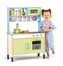 Tato kuchyňka v atraktivním pistáciovém designu má dvě poličky, otvírací dvířka k troubě, mikrovlnce i skříňce pod dřezem, otočné knoflíky u varné desky i u dřezové baterie. Věk: 3+ . Rozměr výrobku je : 71 x 34 x 101cm Vyška pracovní plochy: 55 cm. przeczytaj całość
