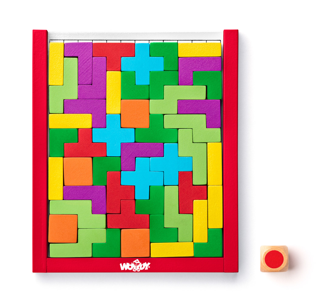 W tej grze dziecko rzuca kostką i zgodnie z wylosowanym kolorem wkłada poszczególne elementy układanki do pudełka tak, aby prawidłowo do siebie pasowały i nie tworzyły pustych przestrzeni. Gra wspiera więc nie tylko kreatywność, ale także wyobraźnię przestrzenną i umiejętność rozwiązywania problemów. Zestaw zawiera łącznie 48 elementów, a wymiary układanki to 17 x 14,5 x 1,5 cm, co stanowi idealny rozmiar dla dzieci w wieku przedszkolnym.