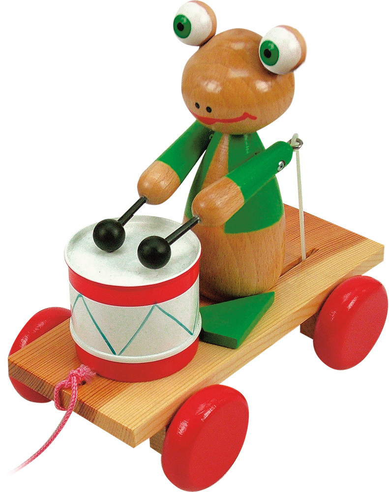 Rozměr : 19x11,5x20 cm Tradiční dřevěná hračka pro nejmenší, která patří mezi nejoblíbenější. Při pohybu, žába pohybuje pacičkama a bubnuje do bubnu. przeczytaj całość