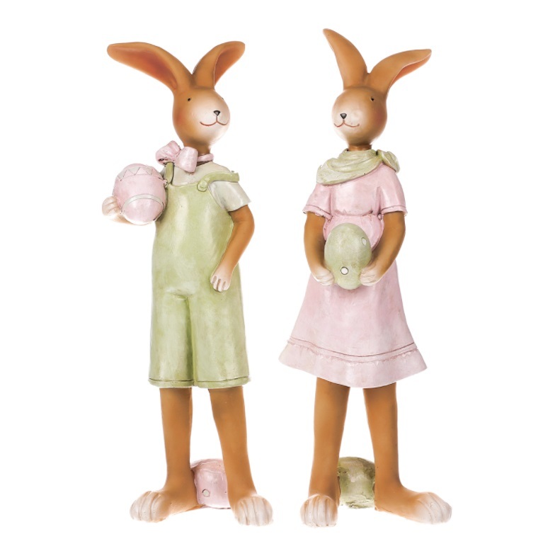 Krásná Velikonoční dekorace v podobě zajíčka nebo zaječice v pestrých barvách, každý držící Velikonoční vajíčko. Svůj výběr uveďte do poznámky. Materiál - keramika. Rozměry - výška 27 cm, šířka 8,5 cm. przeczytaj całość