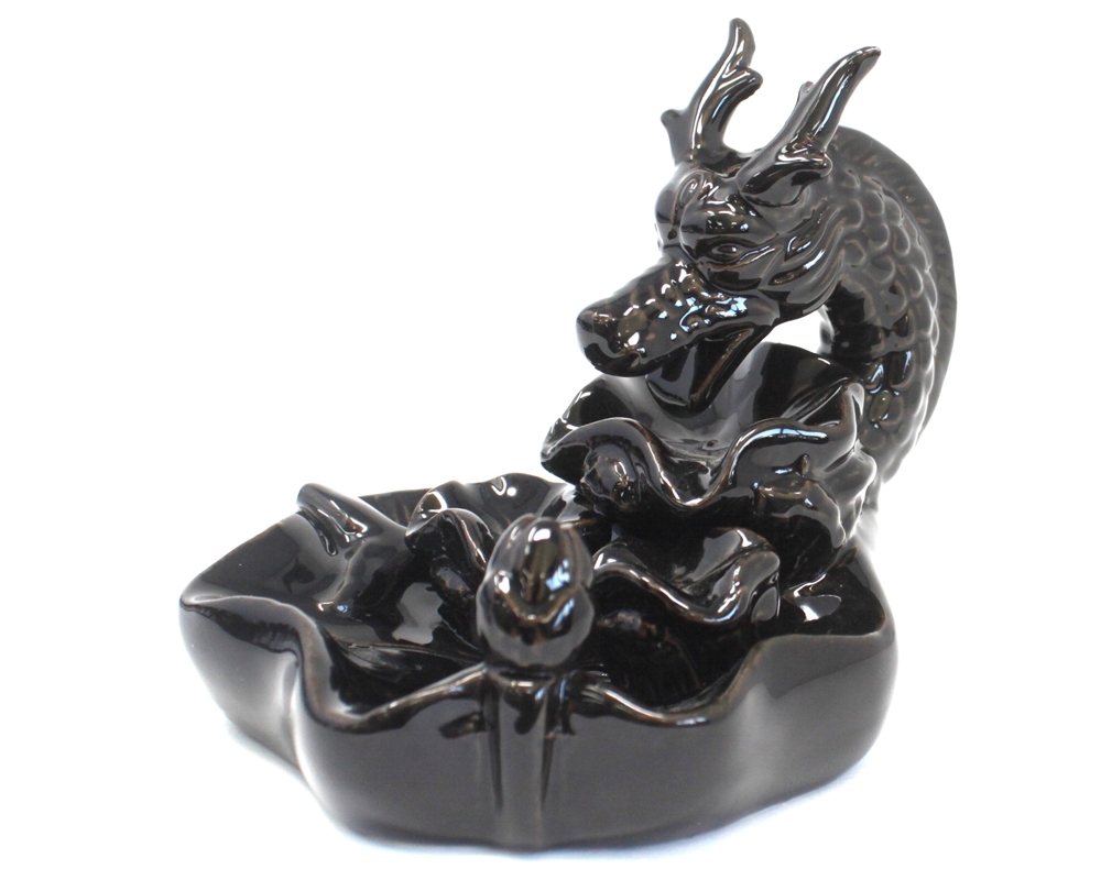 Stojan na Vonné Kužele "Tekoucí Dým" - Velké dračí jezírko byl speciálně navržen pro Vonné Kužele "Tekoucí Dým". Hořící kužel vytváří kouř, který je těžší než vzduch. Kouř prochází otvory stojanu a tím vytváří efekt "tekoucího dýmu". Efekt přiláká pohled a místnost se zaplní příjemnou vůní...
