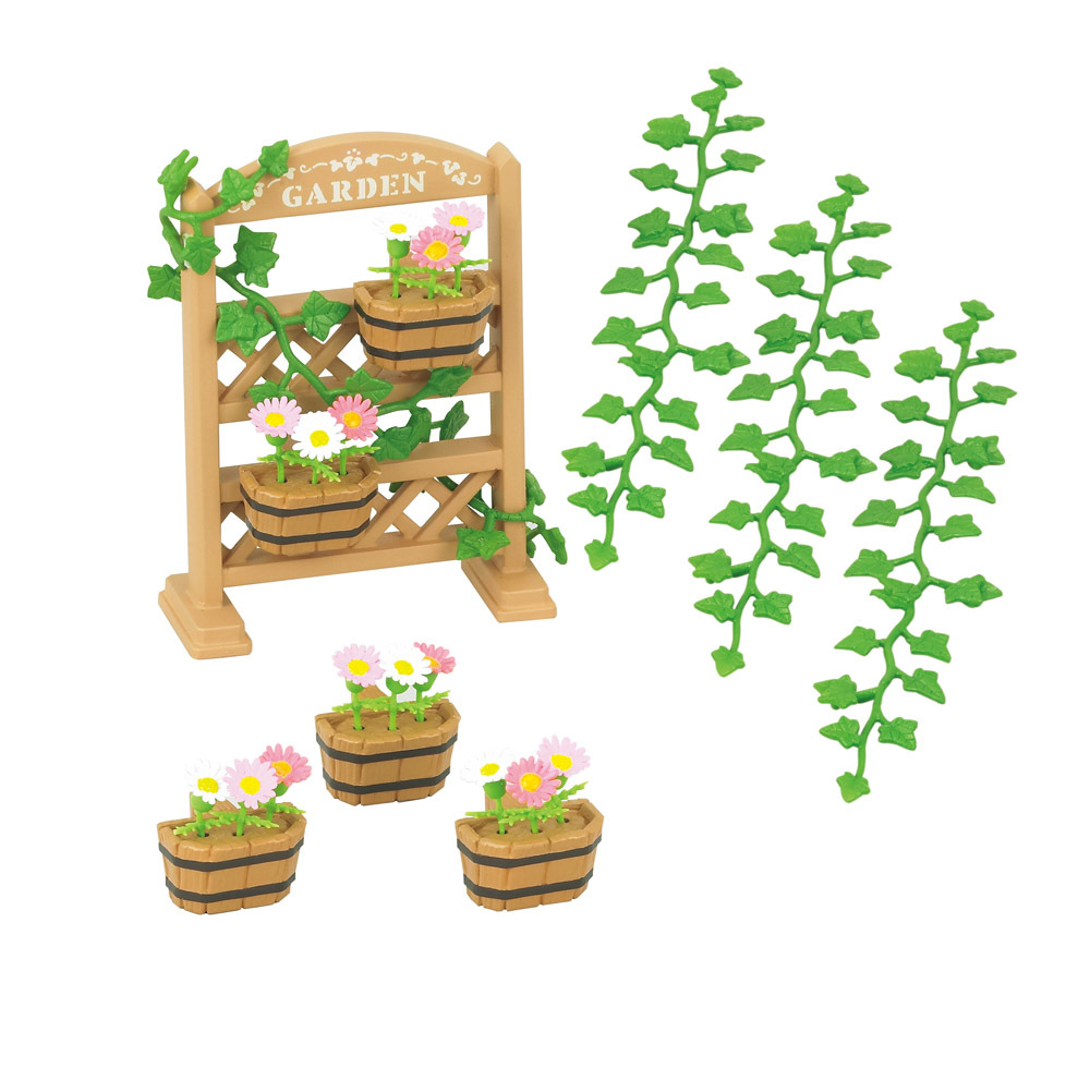 Zahradní dekorace oživí každý domeček a místo v Sylvanian vesničce. Dekorační sada obsahuje: 3 truhlíky s 15 gerberami, 4 pnoucí břečťany ( lze umístit také na zábradlí domu) a stojan na květiny. Rozměr balení: 11,3 ´x 4,8 x 3,8 cm Vhodné pro děti: 3+ przeczytaj całość