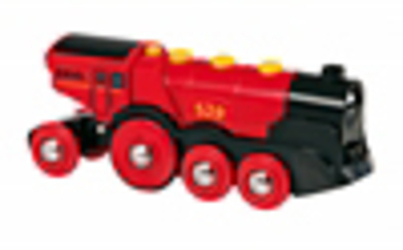 Masywna elektryczna czerwona lokomotywa ze światłami ma opcjonalny luz, funkcję startu (do jazdy do przodu lub do tyłu), a także efekty świetlne i dźwiękowe. Posiada całkowicie nowe kolory, grafikę i opakowanie. Zasilana jest dwiema bateriami AAA (nie są dołączone). przeczytaj całość