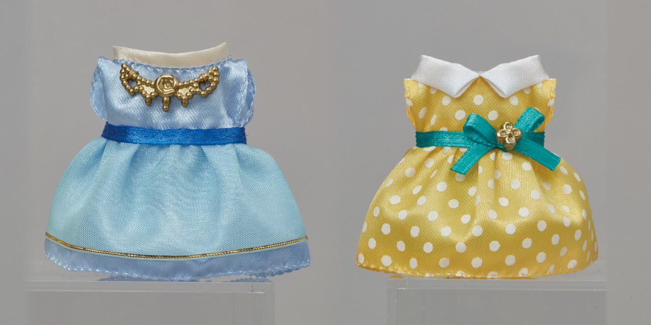 Město - sada oblečků (modrý a žlutý) obsahuje dva rozkošné oblečky, které jsou určeny pro figurky děvčat z městské řady. Elegantní světle modré šaty jsou zdobeny tmavě modrým páskem a zlatým náhrdelníkem. Žluté šaty s bílými puntíky, bílým límečkem a krásnou modrou mašlí v pase využijete každý...