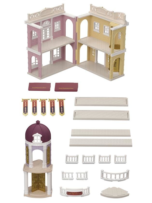 Velký obchodní dům je nádherná městská budova s ozdobnými reliéfy a rytinami. Souprava je vybavena dvoupodlažní budovou obchodního domu a vstupní věží. Hlavní budovu můžete rozevírat a zavírat, abyste si užívali různé tvary. Hlavní budova má ruční výtah, který dokáže vyvézt figurky do horního...