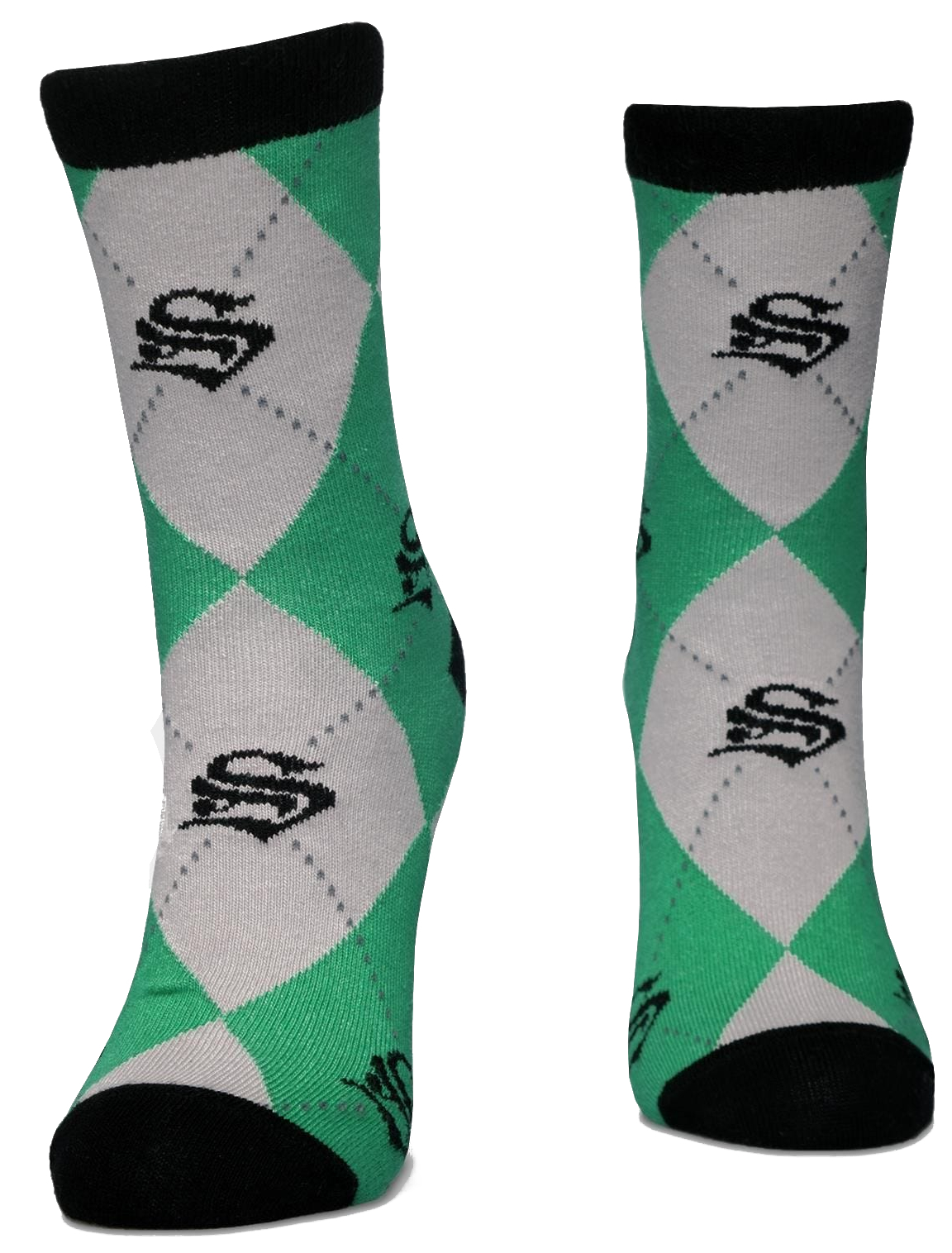 Set tří párů vícebarevných dětských ponožek insporovaných grafikou Slytherinu.