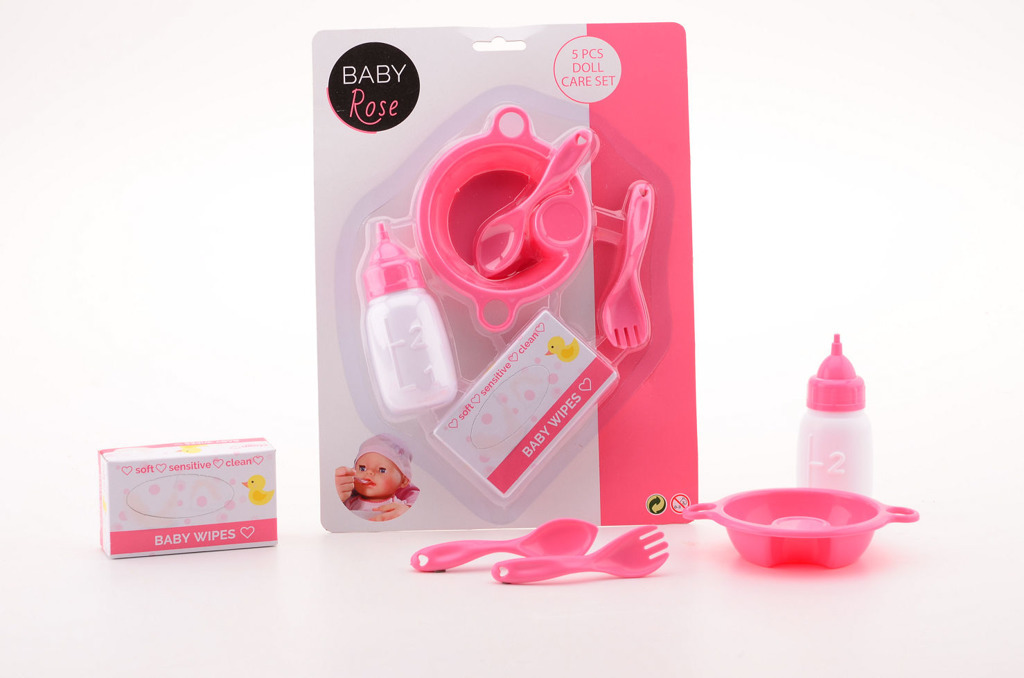 Sada pro panenky obsahuje lahvičku, misku, příbory, kapesníčky. przeczytaj całość