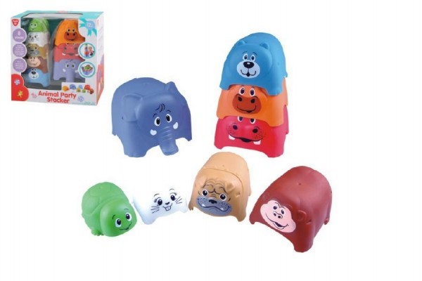 Pyramida/věž kubus zvířátka 8ks plast v krabici 24x24x14cm