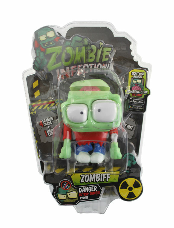Ziemię zaatakował nieznany wirus. Ludzie przemienili się w zombie i mumie. Grupa ocalałych próbuje znaleźć lekarstwo. Jednak próba nie powiodła się. Do powietrza uwolniła się substancja, która wyrządziła jeszcze większe szkody. Ze zombie i mumii powstały super zombie i super mumie. Zbierz wszystkie 6 figurek zombie. Wypróbuj przycisk na ich plecach i obserwuj, jak im wyłupiają się oczy, jak odchyla się czaszka i jak poruszają rękami. Spryskane wodą zmieniają kolor (zależy od temperatury w pomieszczeniu). Dodatkowo Kosťákowi świecą oczy w ciemności. Odwiedź stronę internetową lub pobierz aplikację Zombie Infection i zagraj w grę o zombie. W każdym opakowaniu znajdziesz tajny kod, który odblokuje w grze nowe możliwości. Nie wymaga baterii. Zawiera: 1 figurkę, 4 kolekcjonerskie kartki i kartę z tajnym kodem.