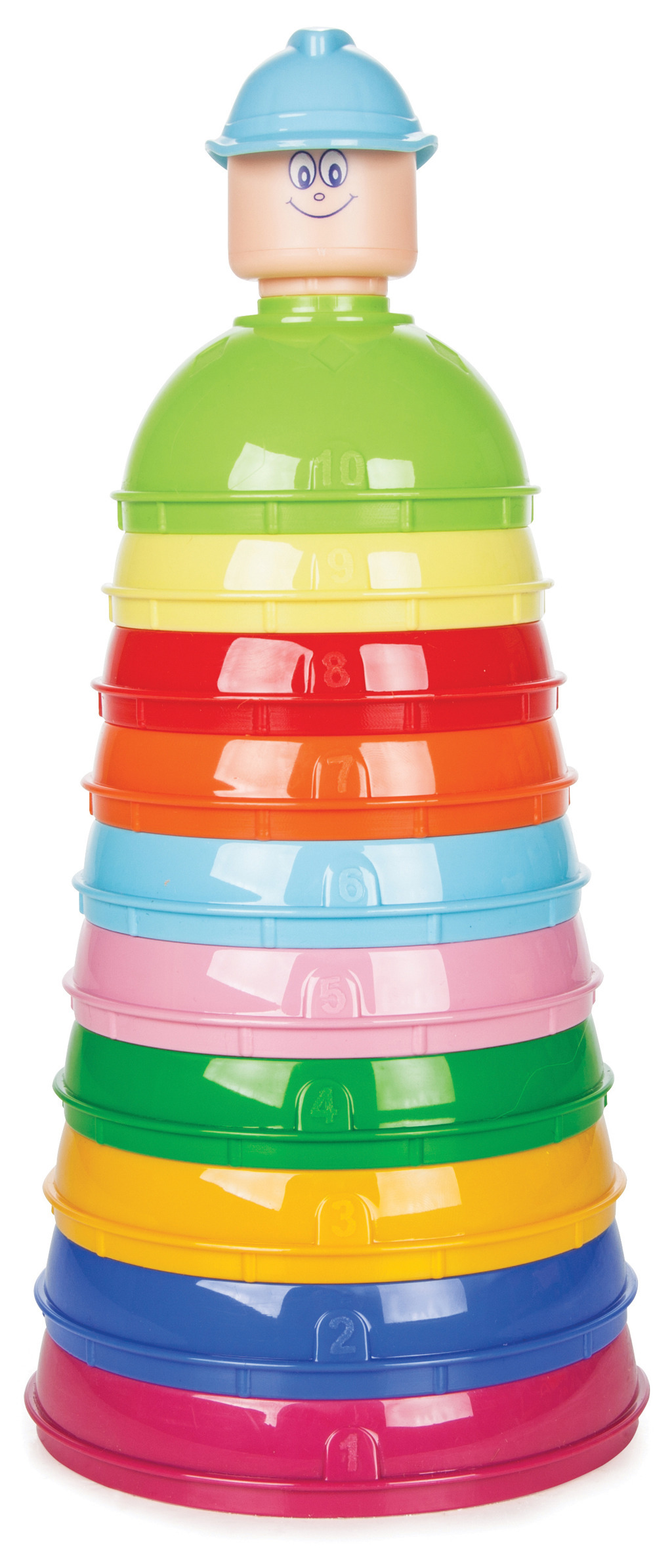 Skládací pyramida z 10 barevných kalíšků. Výška výrobku 28 cm. Pomáhá dítěti v rozvoji motoriky. przeczytaj całość