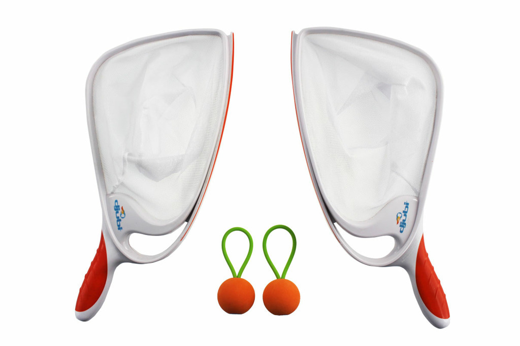 - Zestaw zawiera piankowe piłeczki z gumową pętelką oraz tekstylne łapacze.
