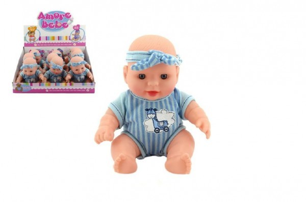 Miminko pevné tělo modré 19cm sedící s čelenkou 9ks v boxu