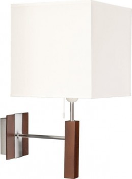 Dekorativní nástěnné svítidlo Violla produktové řady Eseo velmi dobře rozsvítí požadovaný prostor moderního interiéru v chodbě, ložnici nebo obývacím pokoji. Tělo svítidla je vyrobeno z tmavého dřeva v kombinaci s kovovými akcenty v leštěném provedení. Bílé látkové stínidlo skrývá patici E14 pro...