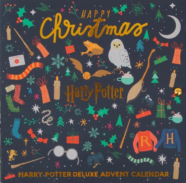 Adventní kalendář Harry Potter Deluxe. Rozměry: 27 x 26 x 10 cm. Kalendář obsahuje 24 předmětů, například: postava z HP (Gomee), ponožky, záložka, ozdoby na stromeček, klíčenka, pero a další... przeczytaj całość