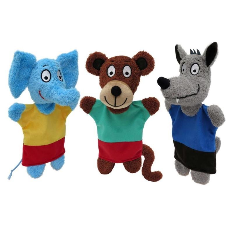 Maňásek Slon Eda neposeda + Opičák Pepa + Vlk šedivák, maňásci - sada 3 ks
