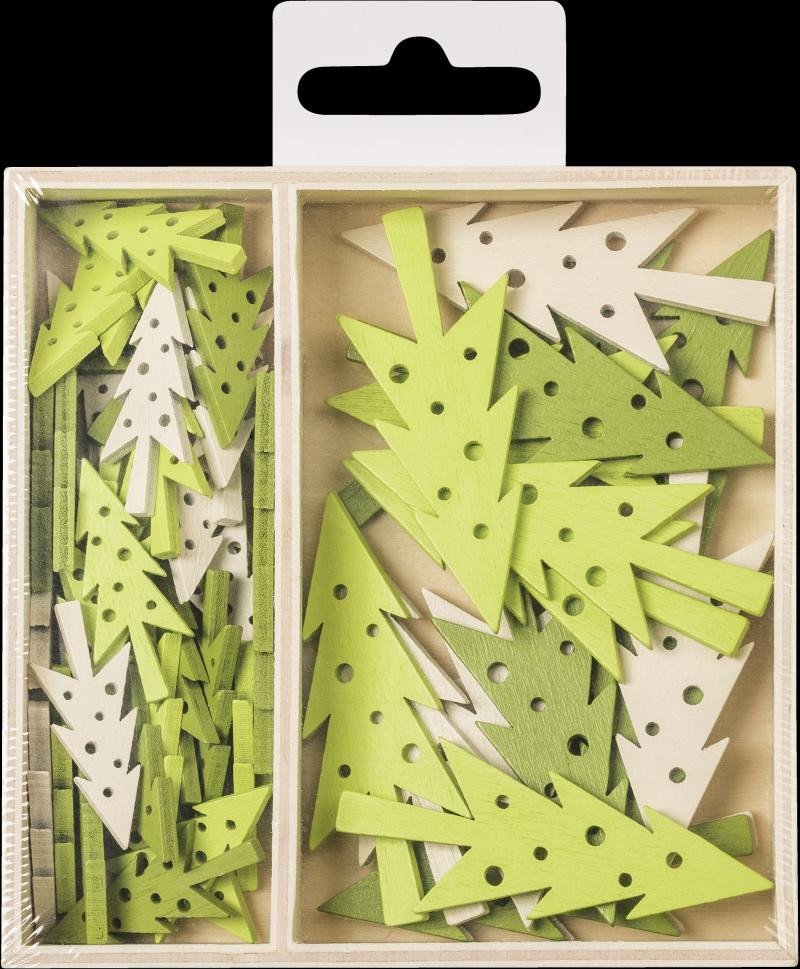 Dřevěné ozdoby vhodné pro dekorační zdobení, výrobu přání, dětskou tvorbu. Baleno v dřevěné krabičce 10,5 x 10,5cm. Barvy: slonová kost, zelená, světle zelená. przeczytaj całość