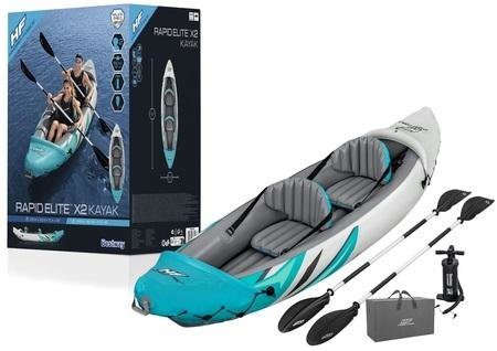 Kajak Dmuchany Dwuosobowy 312 x 98 cm Bestway 65142 Wyjazd nad wodę to idealna forma spędzania wolnego czasu. Aby urozmaicić sobie ten beztroski czas zaopatrz się w dodatkowe akcesoria basenowe. Kajak idealnie sprawdzi się również podczas rekreacyjnej wycieczki po jeziorze lub basenie. Został...