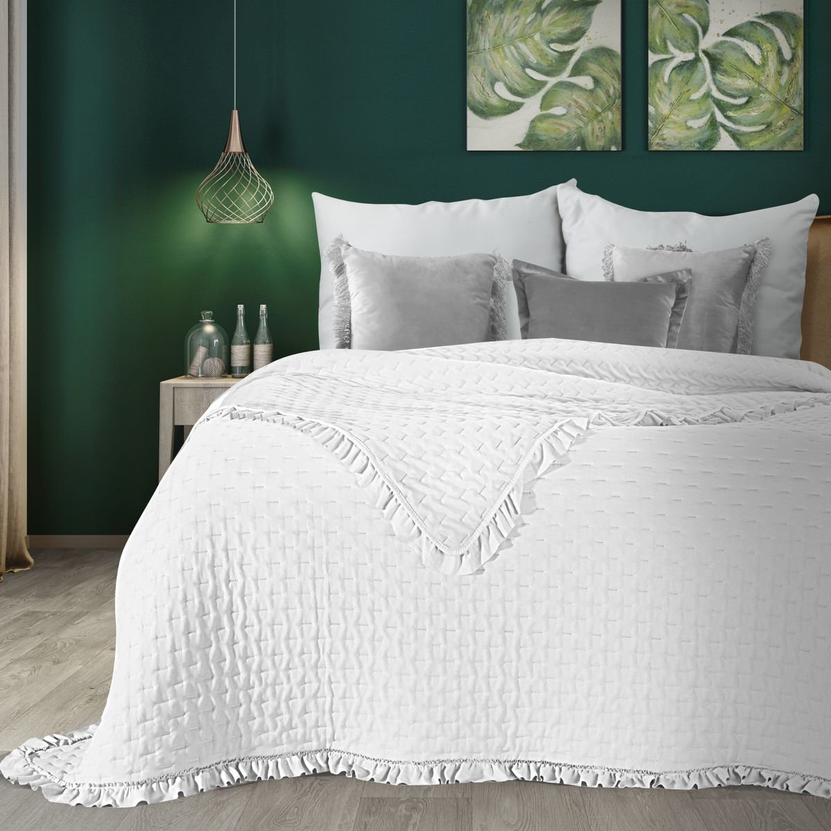 Přehoz na postel s volánky LUBA 220x240 cm bílá Mybesthome