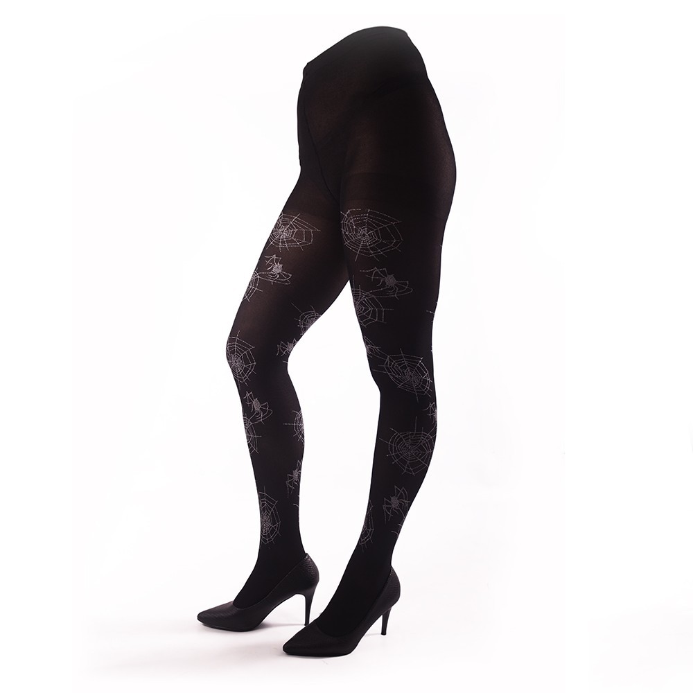 Černé punčocháče s motivem stříbrných pavučinek. Perfektní doplněk ke kostýmu nebo na párty! przeczytaj całość