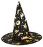 Wesoły halloweenowy kapelusz to świetny dodatek na przyjęcie lub karnawał! Czarny kapelusz zdobiony jest złotymi magicznymi motywami. Stań się halloweenową gwiazdą dzięki temu kapeluszowi! Średnica kapelusza wynosi 20 cm. przeczytaj całość