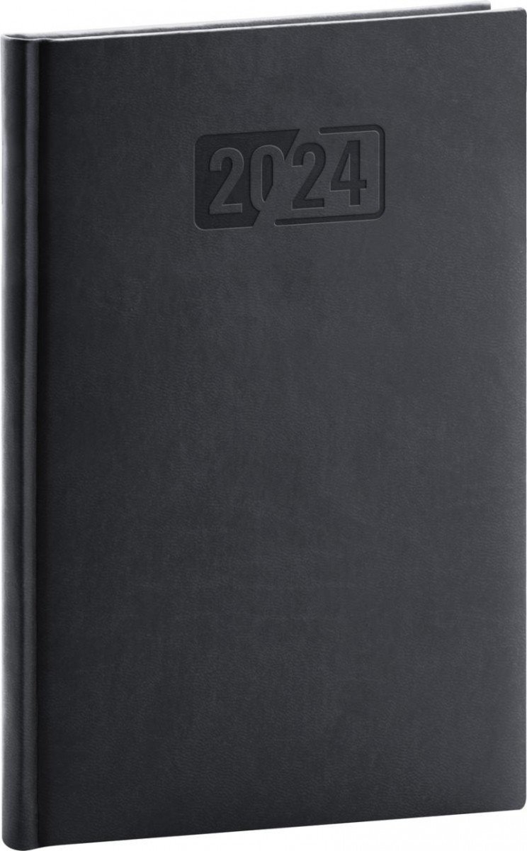 Týdenní diář Aprint 2024 v černé barvě. Klasika i elegance, nejžádanější povrch, na který lze snadno razit firemní loga s jemnou strukturou. Nová kolekce vsadila na osvědčené barvy, které doplňuje nová ražba letopočtu. Týdenní rozvrh s česko-slovenským kalendáriem a doplňkovou angličtinou,...