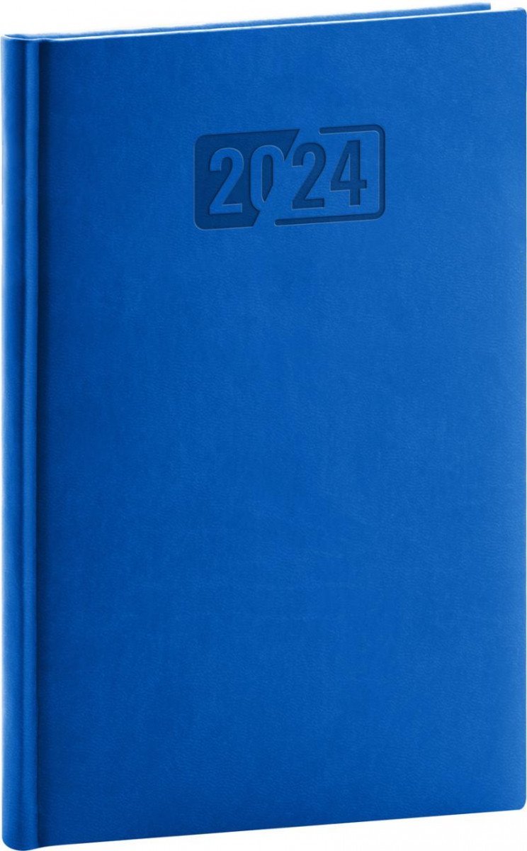 Týdenní diář Aprint 2024 v modré barvě. Klasika i elegance, nejžádanější povrch, na který lze snadno razit firemní loga s jemnou strukturou. Nová kolekce vsadila na osvědčené barvy, které doplňuje nová ražba letopočtu. Týdenní rozvrh s česko-slovenským kalendáriem a doplňkovou angličtinou,...