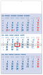 Praktický plánovací kalendář s tříměsíčním rozložením a orientační lištou s posuvným jezdcem. Obsahuje kalendárium s českými jmény a světovými svátky na světlemodrém pozadí. przeczytaj całość