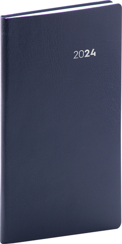 Plánovací kapesní diář Balacron 2024 v modrém provedení, doplněný o stříbrný letopočet. Povrch diáře si získal oblibu díky kvalitnímu svrchnímu materiálu, který je extrémně odolný vůči vnějšímu poškození. Týdenní rozvrh s česko-slovenským kalendáriem a doplňkovou angličtinou, němčinou,...