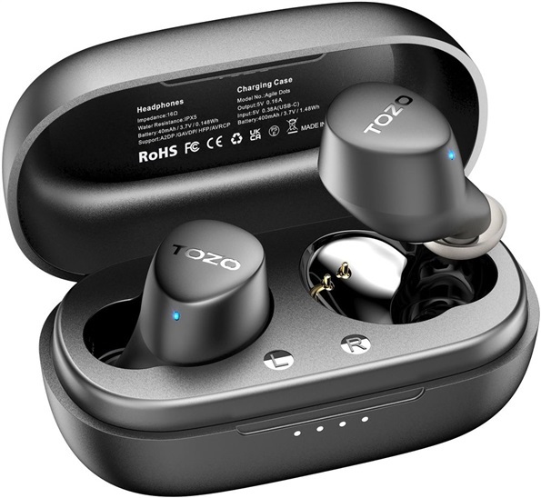 TWS sluchátka, do ucha (špunty), s mikrofonem, černá, Bluetooth 5.3, výdrž baterie až 6 h a až 24 h s nabíjecím pouzdrem, odolnost IPX5, přijímání hovorů, přepínání skladeb, s ovládáním hlasitosti, vyměnitelné špunty, frekvenční rozsah 18 Hz - 20 KHz, nabíjecí port: USB-C. przeczytaj całość
