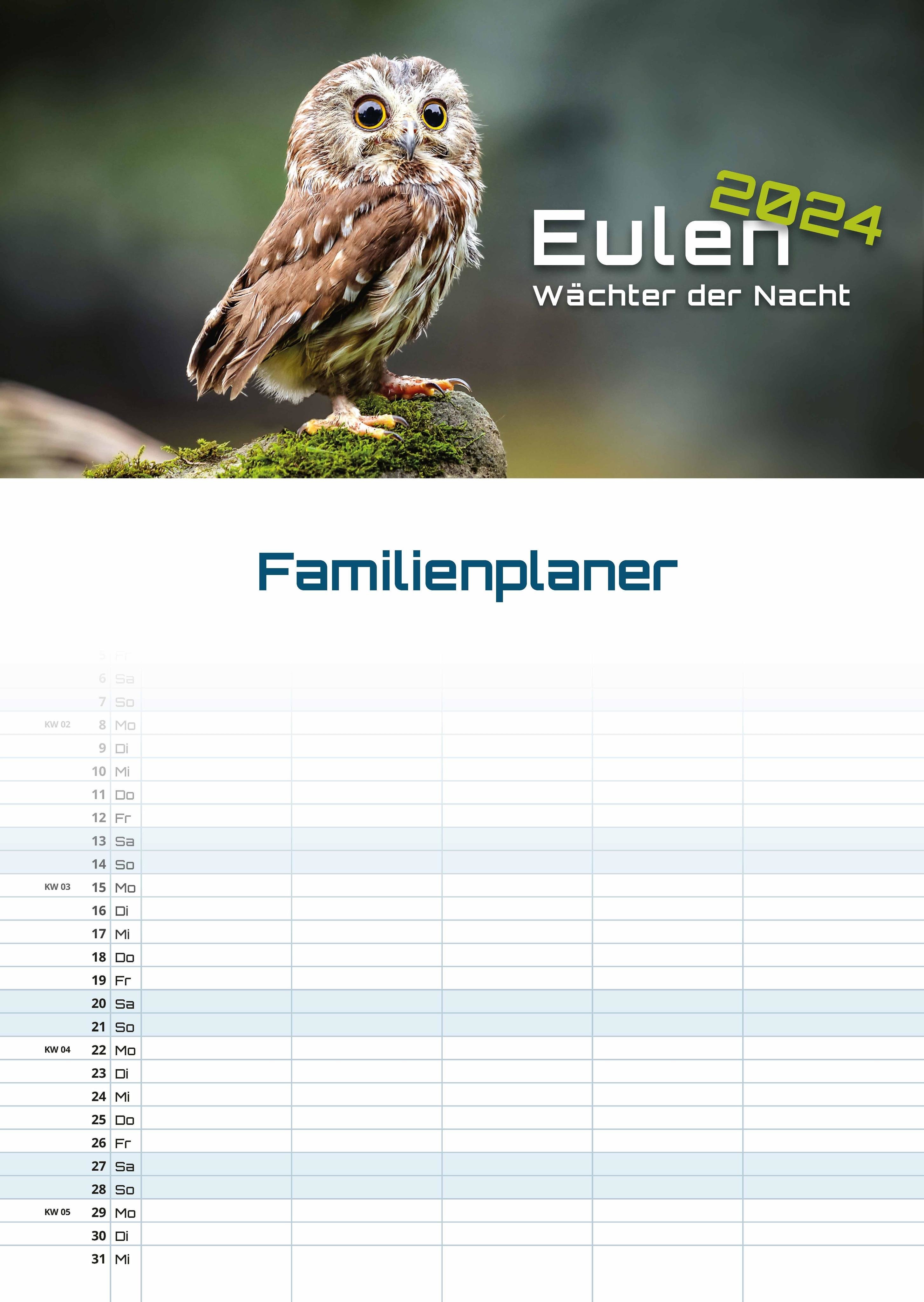 Eulen - Wächter der Nacht - 2024 - Kalender DIN A3 (Familien-/Terminplaner) (niemiecki)