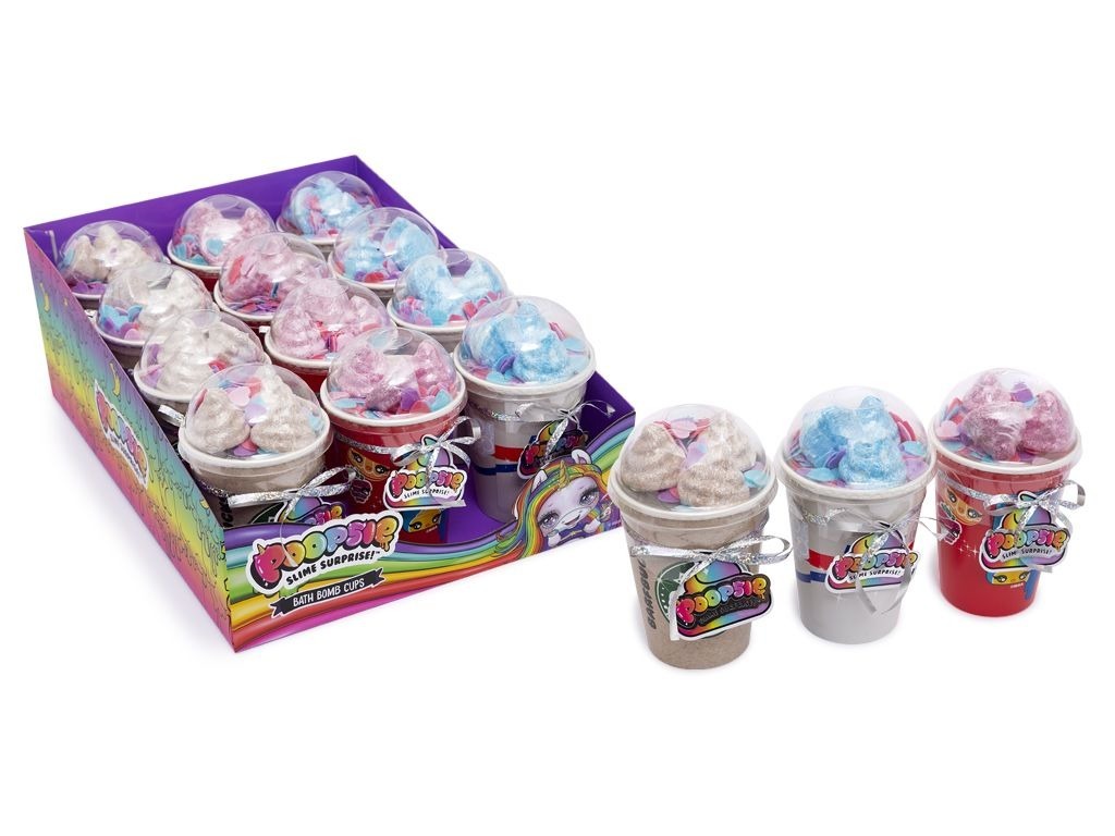 Bomba do koupele v kelímku POOPSIE – různé barvy a vůně. Dermatologicky testováno. przeczytaj całość