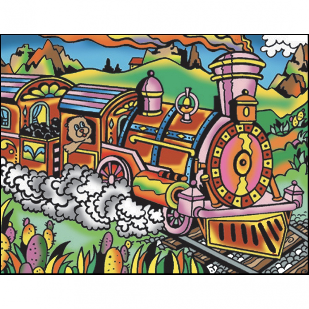 SAMETOVÝ OBRÁZEK VLAK 21X29,7 CM.Sametový obrázek k vybarvení, motiv Vlak. Vybarvovací šablona je ze sametu, který usnadňuje vybarvení. Obrázek můžete vybarvit fixami, pastelkami nebo voskovkami. Okraje motivu jsou přesně vymezeny sametem a zabraňují přetahování okrajů.Obrázek je možné vybarvit...