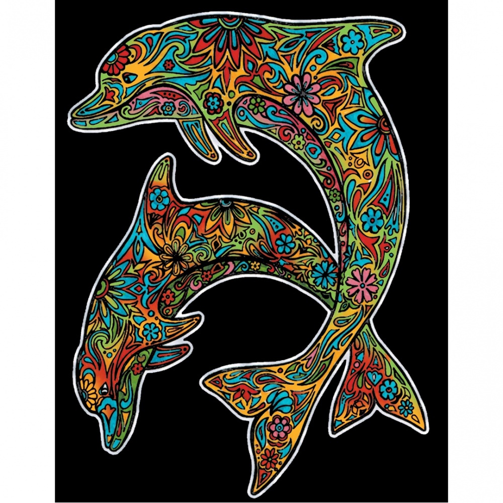 Sametový obrázek k vybarvení, motiv Delfíni. Vybarvovací šablona je ze sametu, který usnadňuje vybarvení. Obrázek můžete vybarvit fixami, pastelkami nebo voskovkami. Okraje motivu jsou přesně vymezeny sametem a zabraňují přetahování okrajů.Obrázek je možné vybarvit dle přiloženého motivu nebo můžete popustit uzdu své fantazii.Velikost: S 21 x 29,7cm.Vhodné pro děti od 3 let.