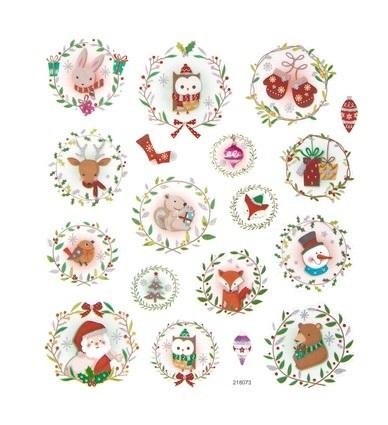 Świąteczne naklejki z przejrzystej folii wzbogacone akcentami ze srebrnego brokatu.Naklejki z motywem wieńców i uroczych zwierzątek to doskonały dodatek do prac tworzonych przez dzieci oraz wszelkich projektów scrapbookingowych, jak kartki okolicznościowe, pakowanie prezentów i ozdoby na... przeczytaj całość