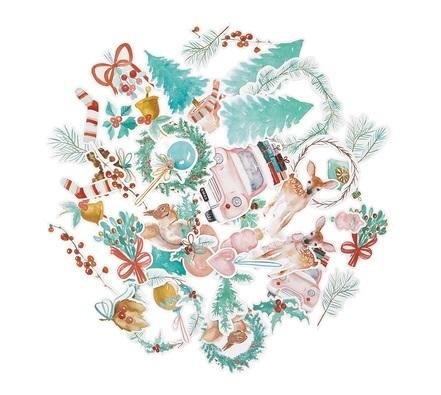 Świąteczne elementy z tektury wzbogacone opalizującym brokatem.Stanowią część kolekcji Jolly Christmas z motywami leśnych zwierzątek, choinek, gałązek, prezentów, bombek i bożonarodzeniowych dekoracji w stonowanych, pastelowych kolorach.W kolekcji Jolly Christmas znajdziesz również dopasowane...