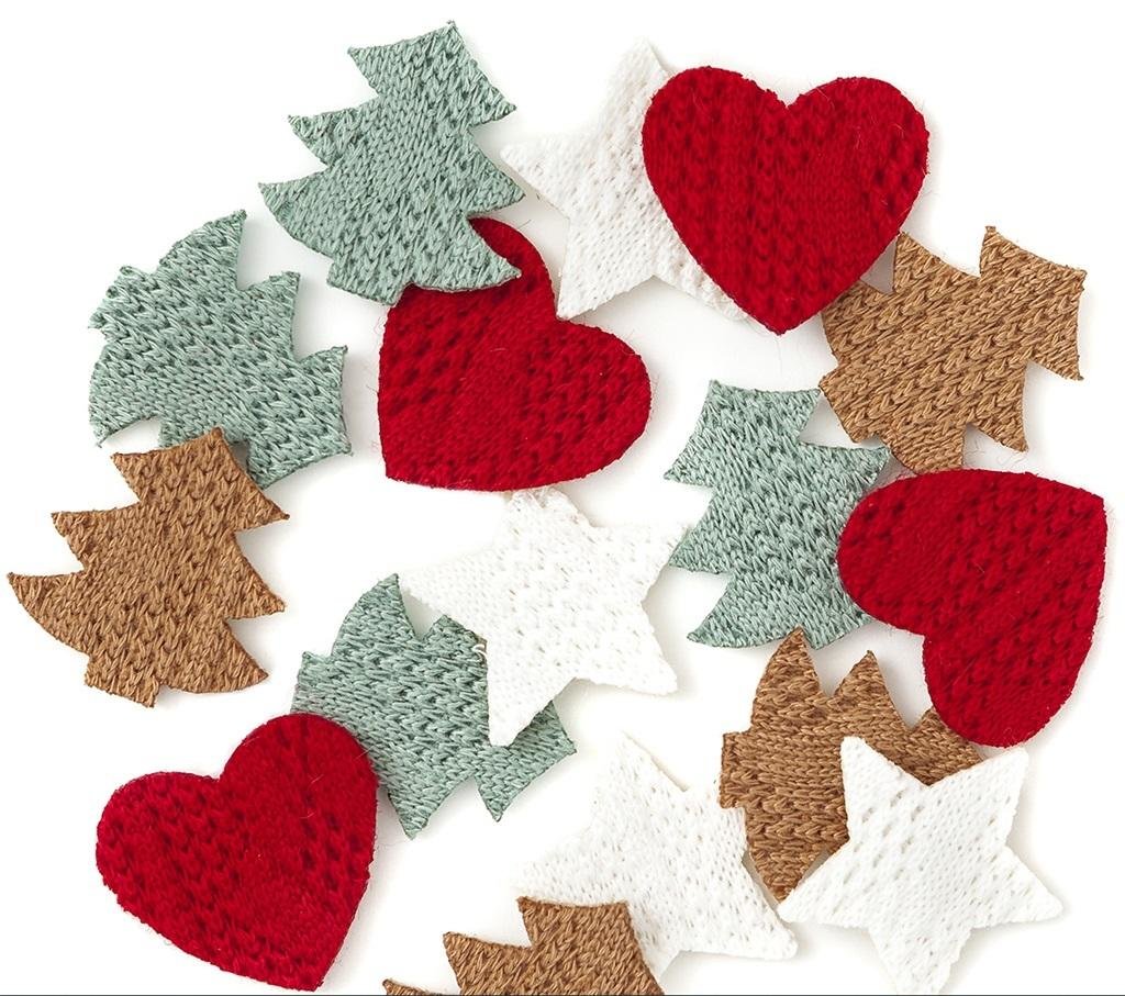 Dzianinowe naklejki ze sweterkowym motywem dodadzą uroku i ciepła Twoim projektom kreatywnym. Doskonałe do prac typu cardmaking oraz scrapbooking np. pięknych bożonarodzeniowych kartek i świątecznych layoutów. Sprawdzą się idealnie do przyozdabiania toreb i opakowań prezentowych oraz domowych...