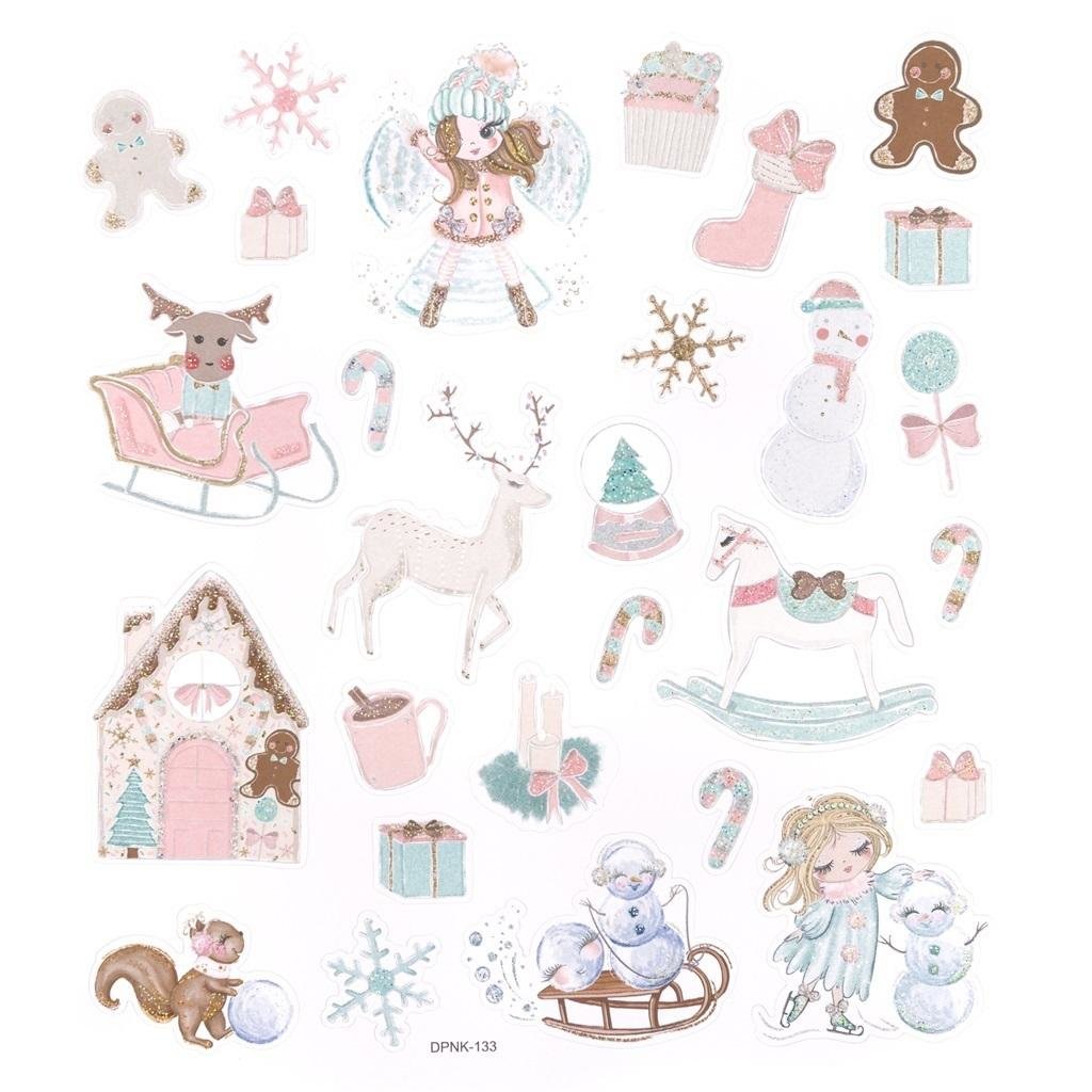 Naklejki ze świątecznymi motywami z zimowej kolekcji Frosty Pastels. Uroku i oryginalności nadają im pastelowe kolory oraz opalizujący brokat.Znajdziesz tu uroczego konika na biegunach, chatkę z piernika, zimowe sanie i wiele innych uroczych motywów. Doskonałe dla dzieci oraz do projektów...
