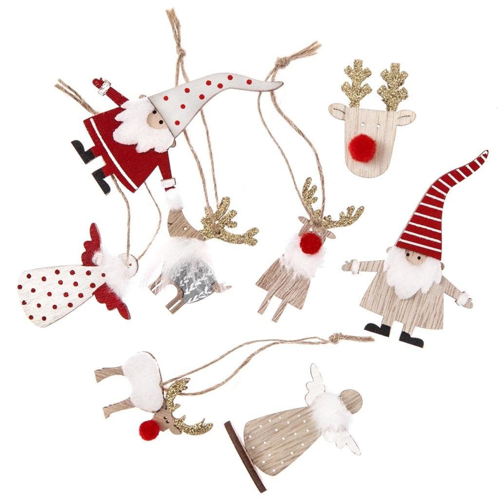 Drewniane motywy świąteczne sprawdzą się doskonale jako gotowe ozdoby, jak i akcesoria do wykorzystania przy tworzeniu dekoracji.4 elementy z zestawu posiadają dziurki z zawieszkami, dzięki czemu można zawiesić je bezpośrednio na choince. Drewniane motywy zdobione są farbą, a niektóre z nich...
