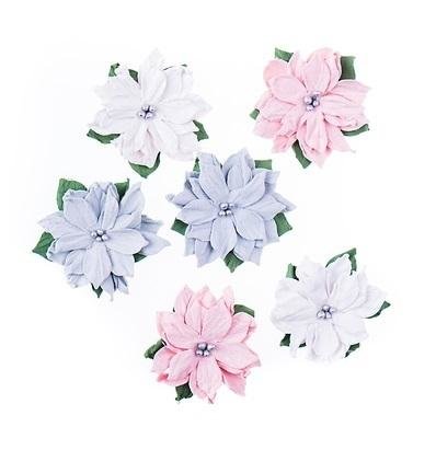 Realistycznie wyglądające, przestrzenne kwiaty gwiazdy betlejemskiej w pastelowych barwach. Ręcznie modelowane z papieru morwowego (mulberry). Element zimowej kolekcji Frosty Pastels, w której znajdziesz również naklejki z brokatem, kształty z papieru, tasiemki i pompony w dopasowanej estetyce i...