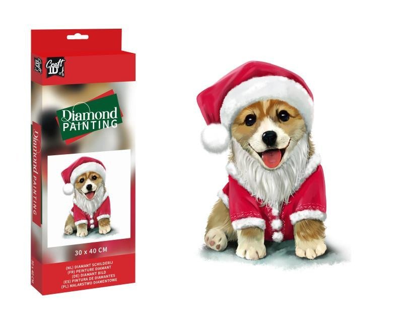 Diamantový obrázek/Pes ve Vánočním kotýmu 30 x 30cm
